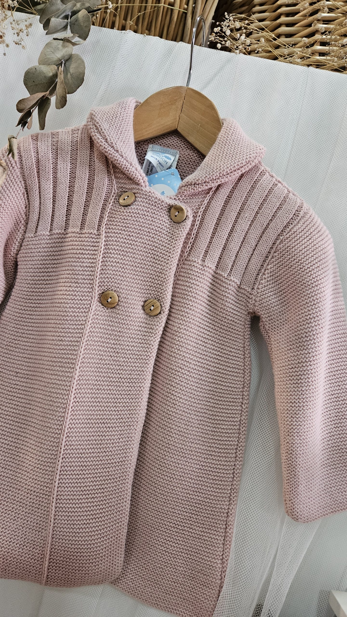 Abrigo punto unisex abotonada delante con cuellos . Punto doble muy abrigado. Ideal para combinar con diferentes colección para ésta temporada de Otoño Invierno.   Color Rosado