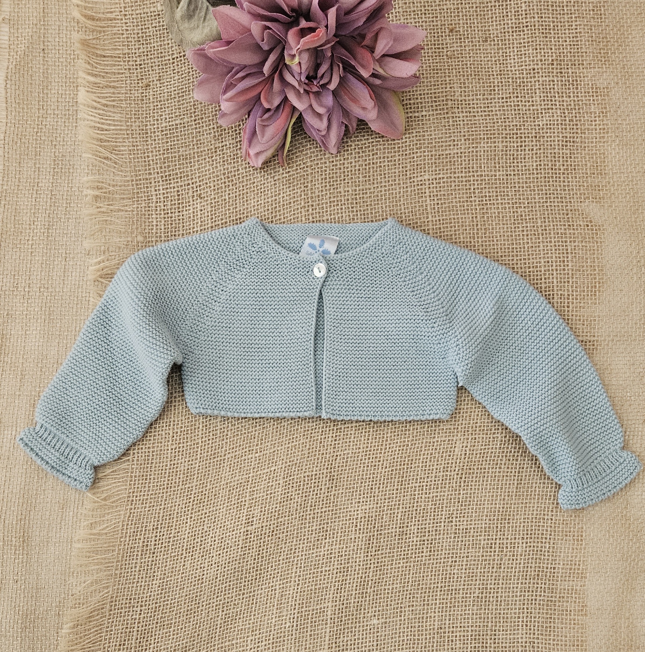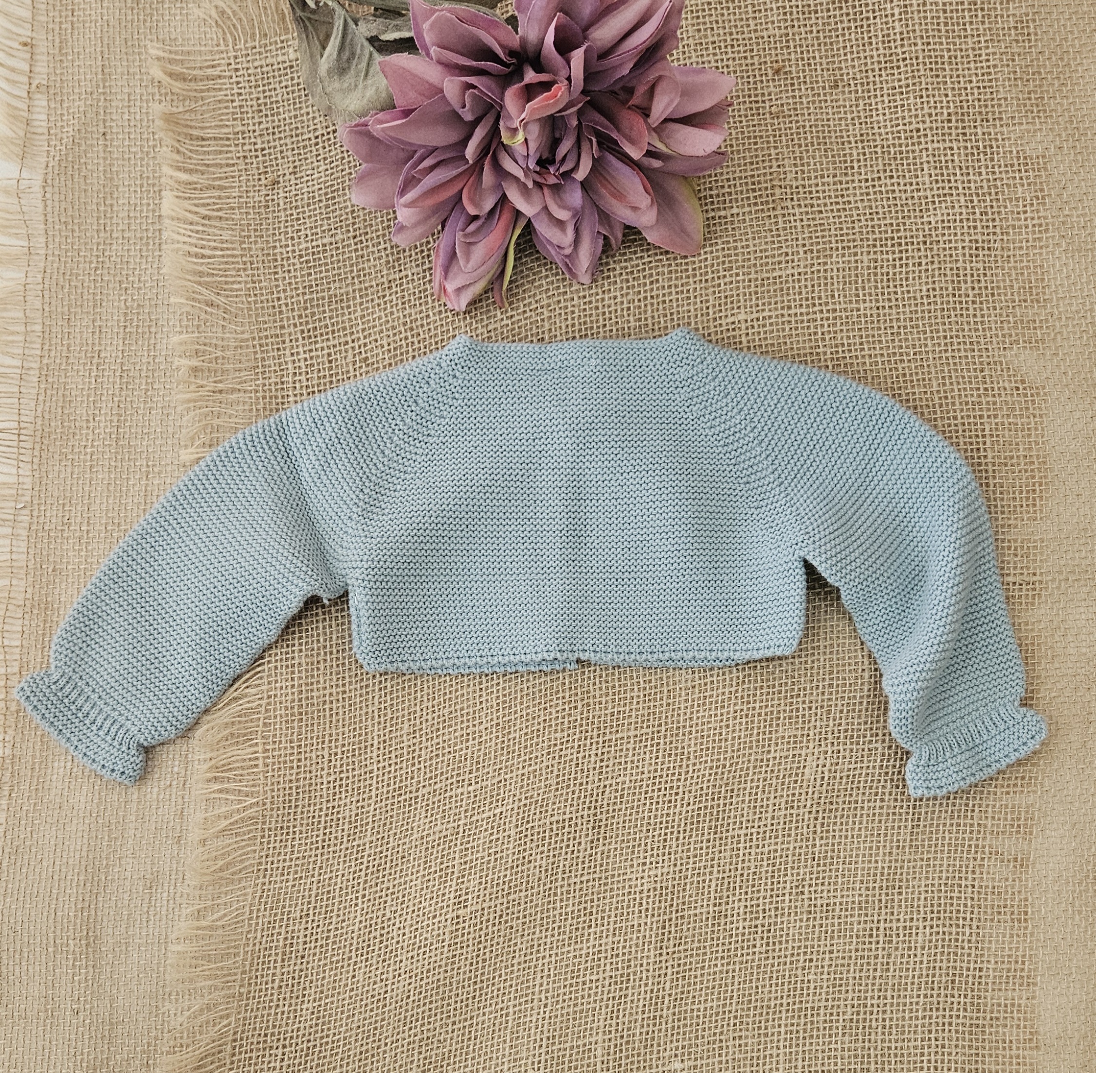 Chaqueta de punto bobo tipo bolero unisex color Verde empolvado.