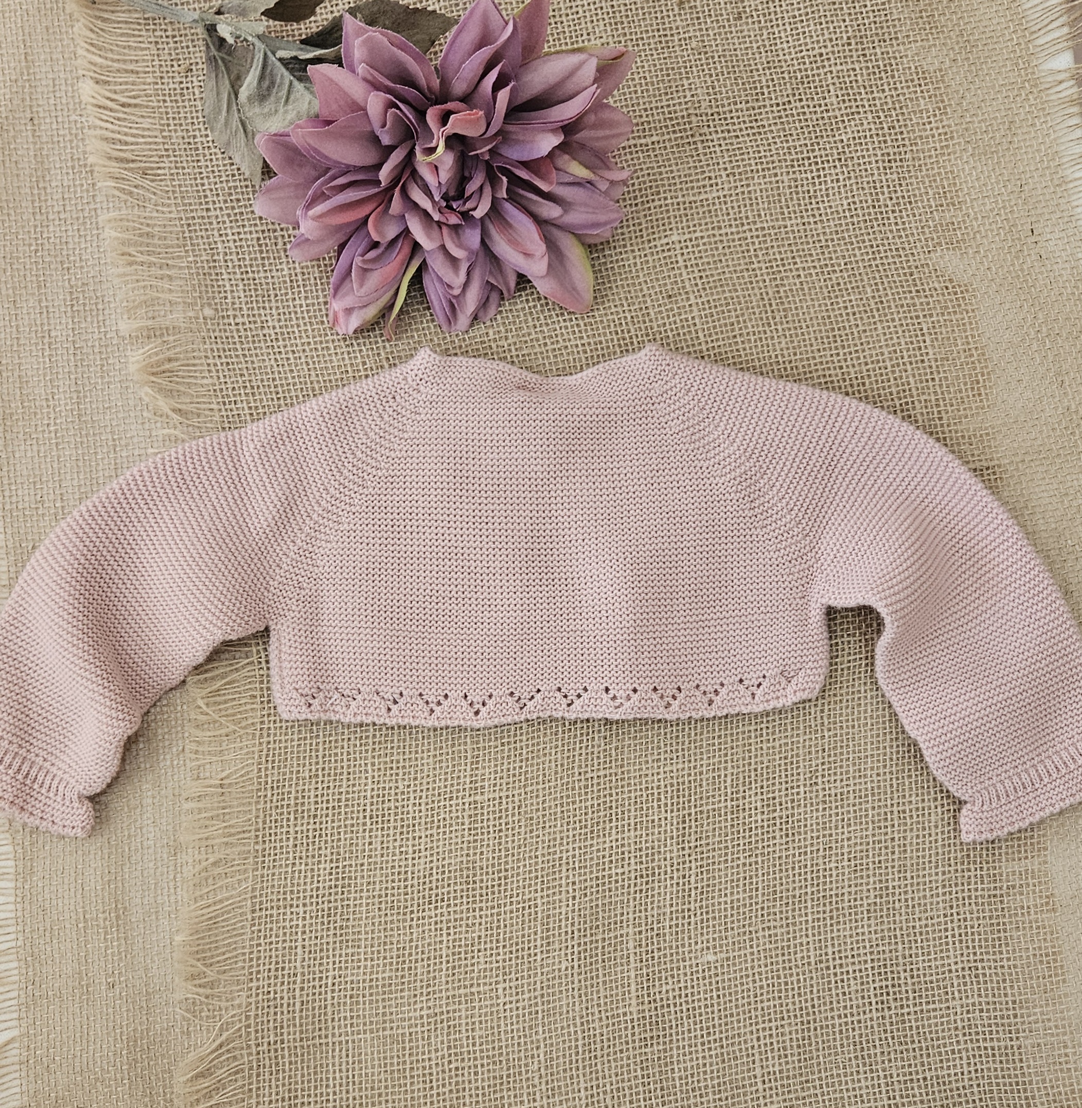 Chaqueta de punto bobo tipo bolero unisex color Rosado