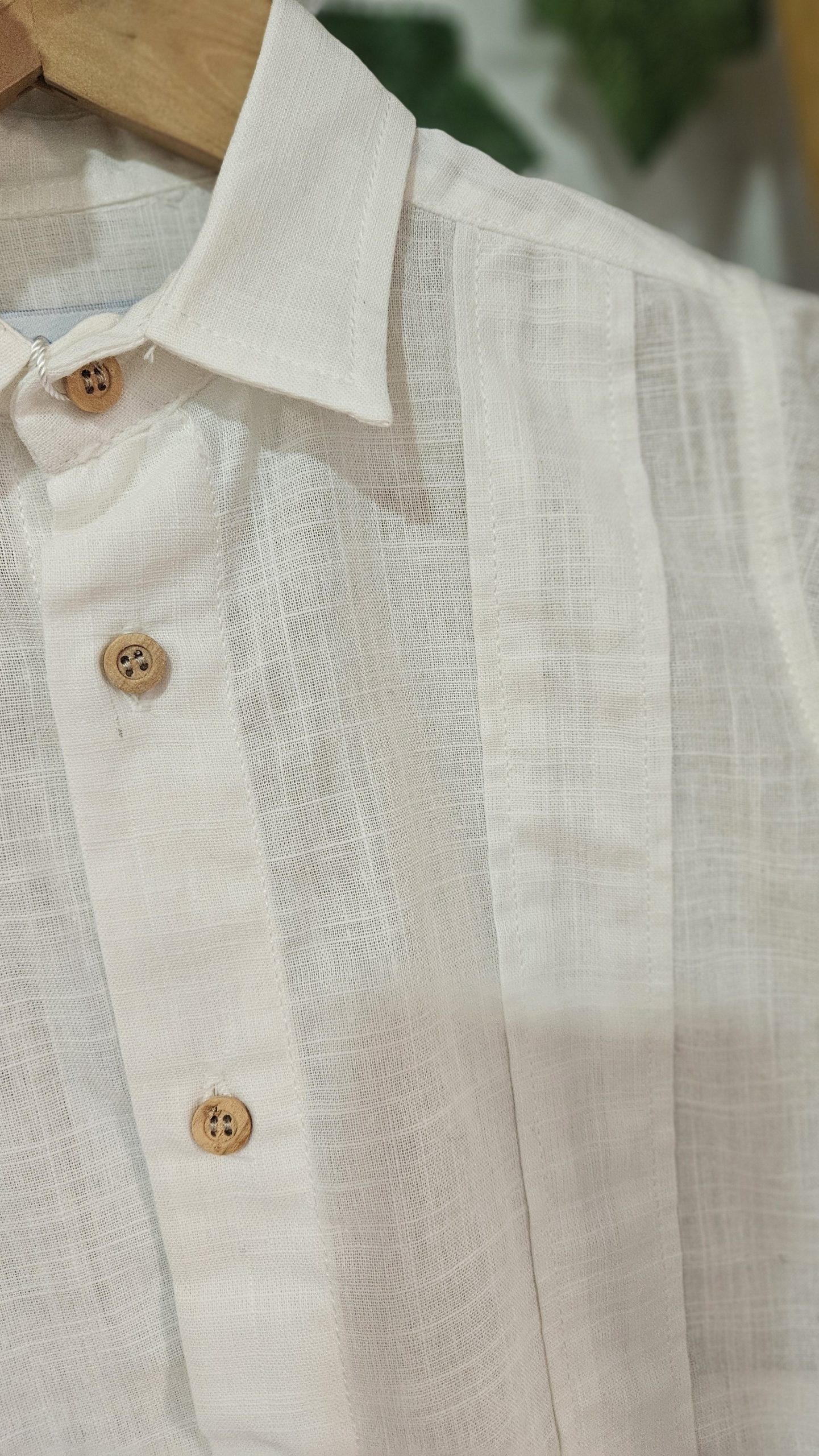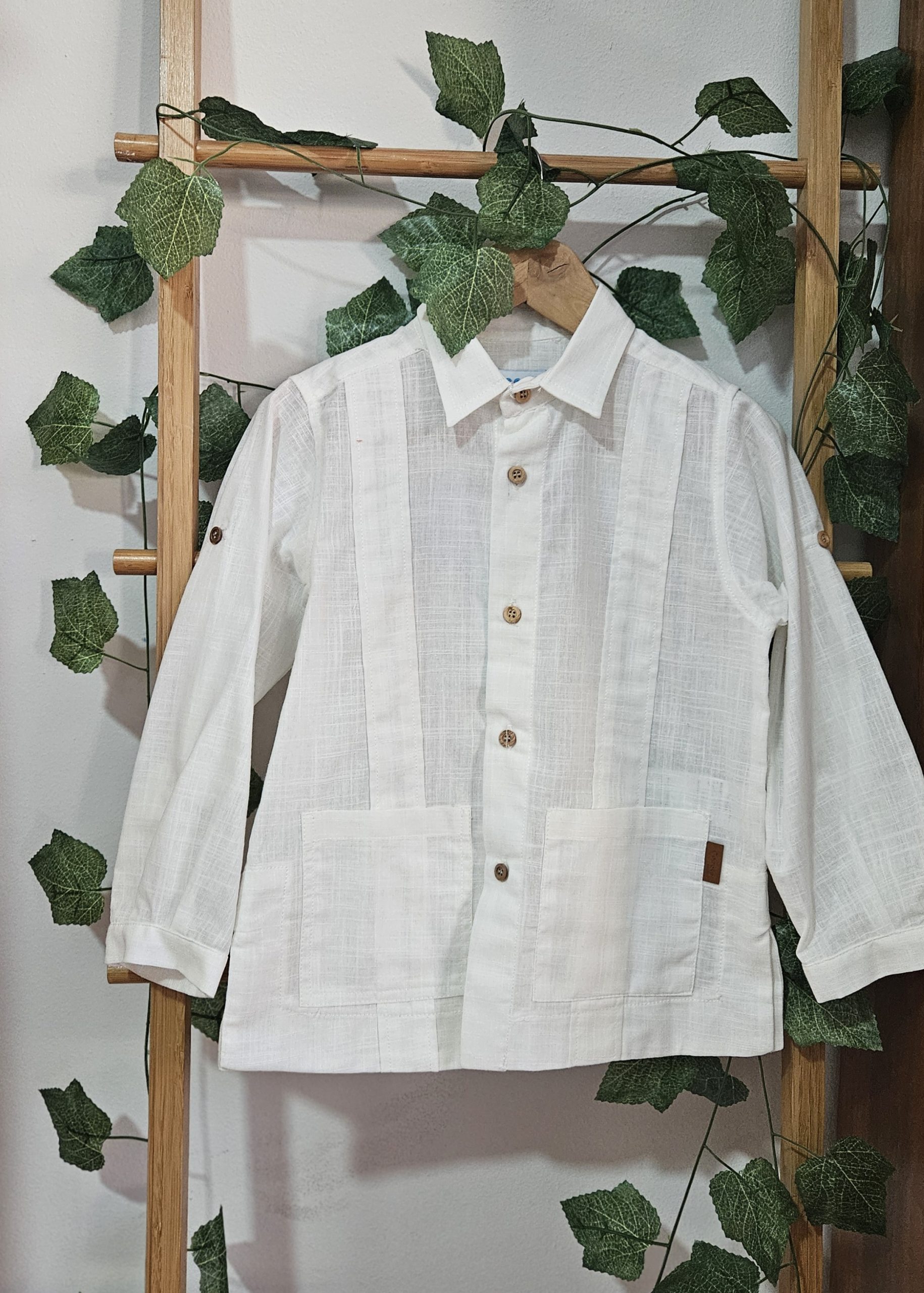 Camisa para niño tipo guayabera  adorno tablas con bolsillos de parche en parte delantera, composición  100% algodón color Blanco, marca Cocote Moda infantil,  primavera verano.