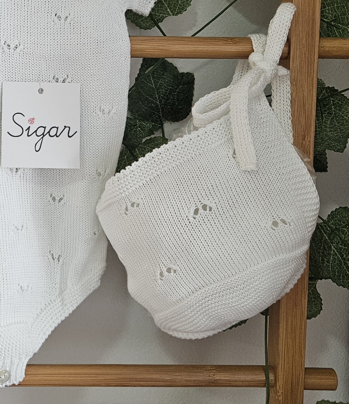 • Capota de punto  bebé unisex – color  Blanco. . , punto calado, ideal para combinar con pelele a juego. R200960  Hilatura de excelente calidad y tacto muy suave y confortable.  Marca Sigar.