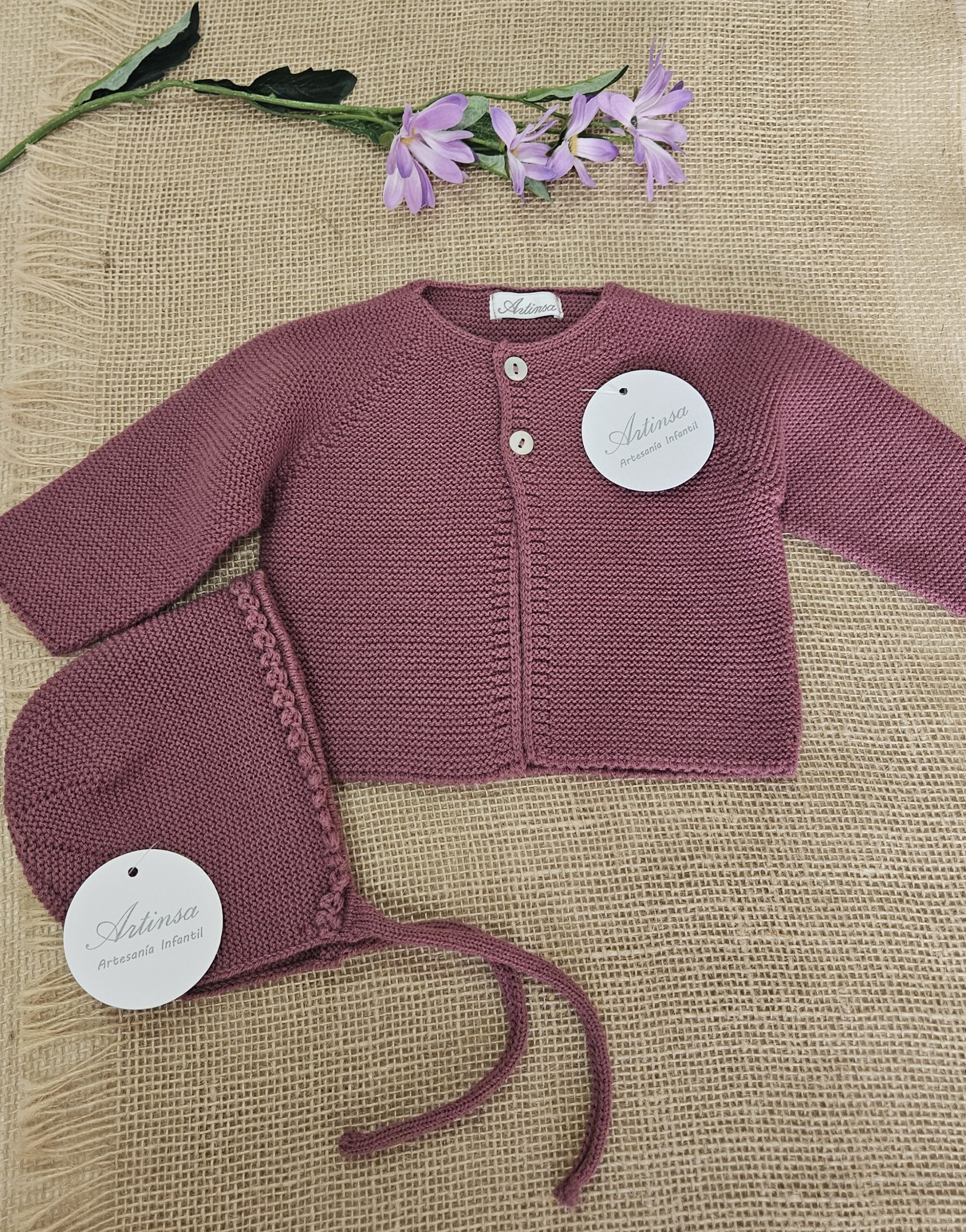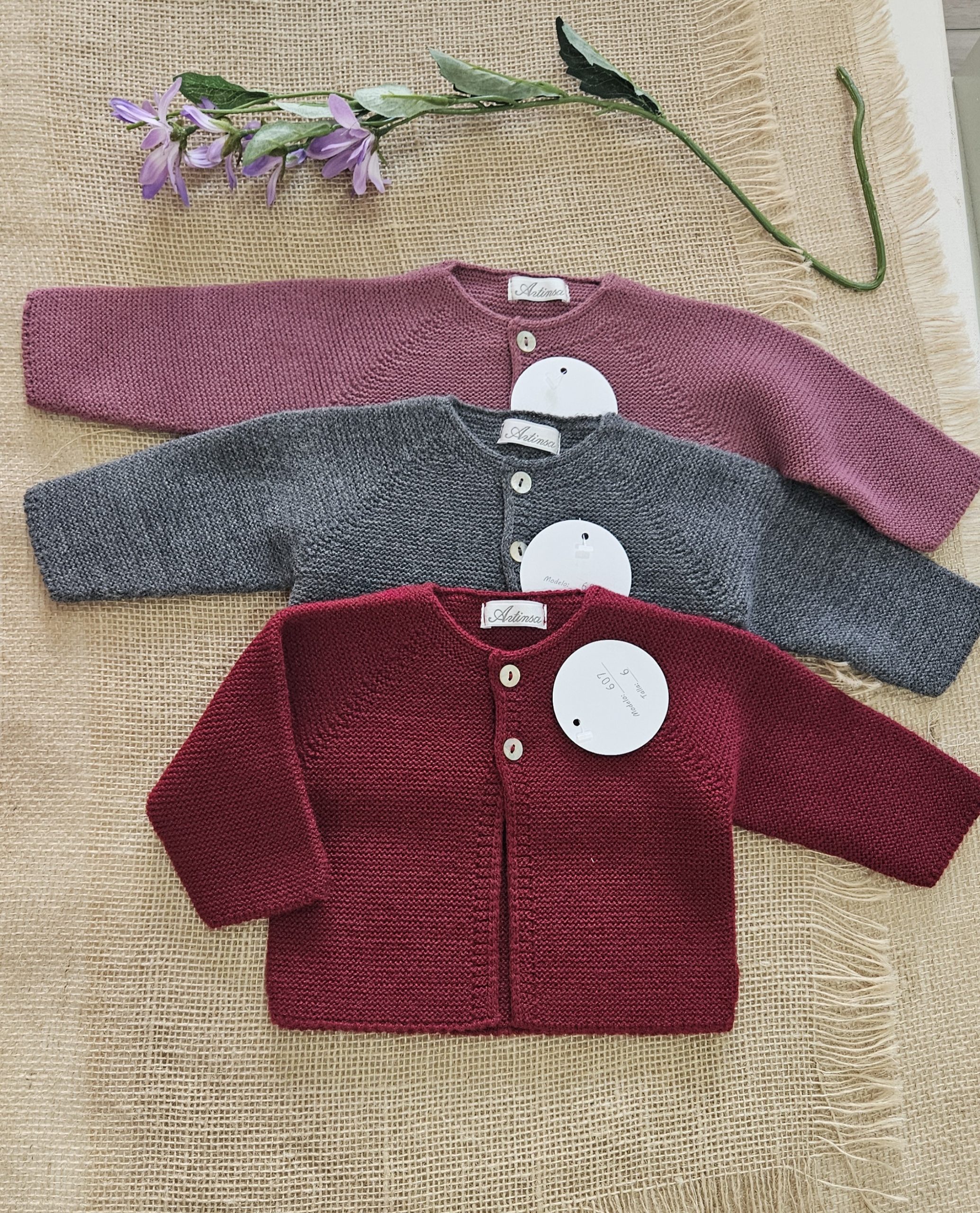 Chaqueta de punto  color Cereza  ideal para combinar con diferentes modelos de peleles y jesusitos, conjuntos……  Ceremonia, Marca Artinsa.