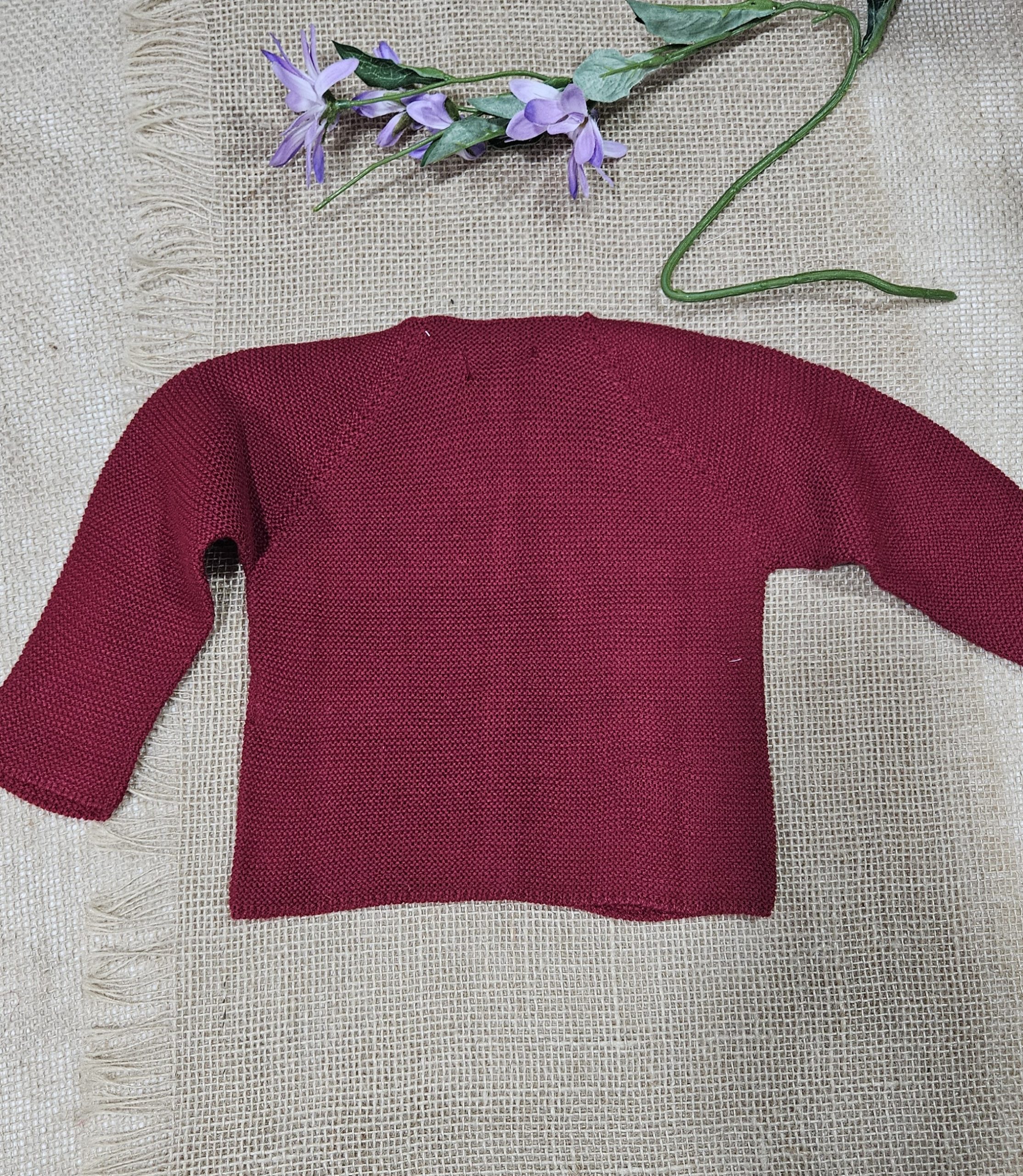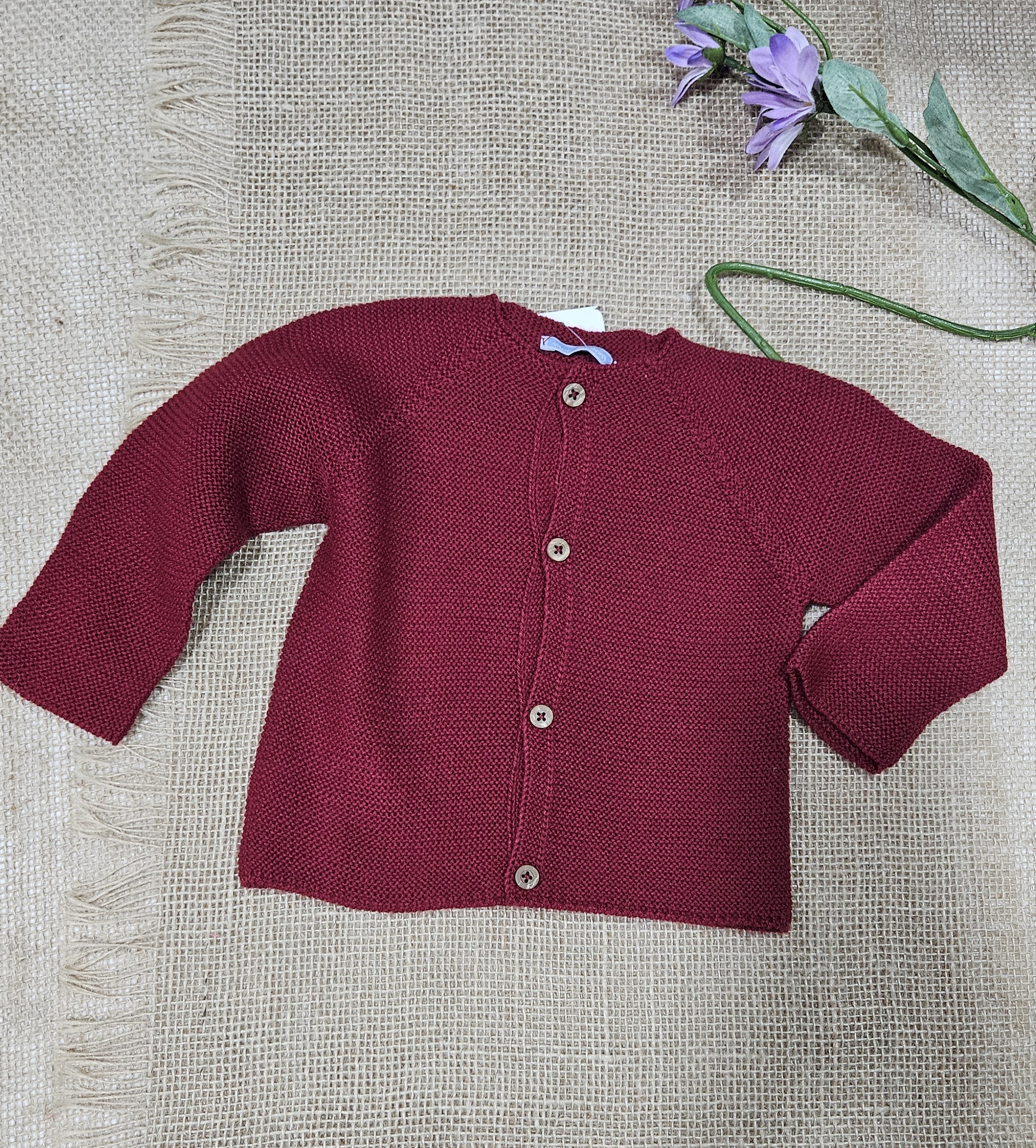 Rebeca chaqueta larga  de punto bobo unisex color Scarlet (Burdeos) .  Ideal para combinar con vestidos, peleles, pantalón ..