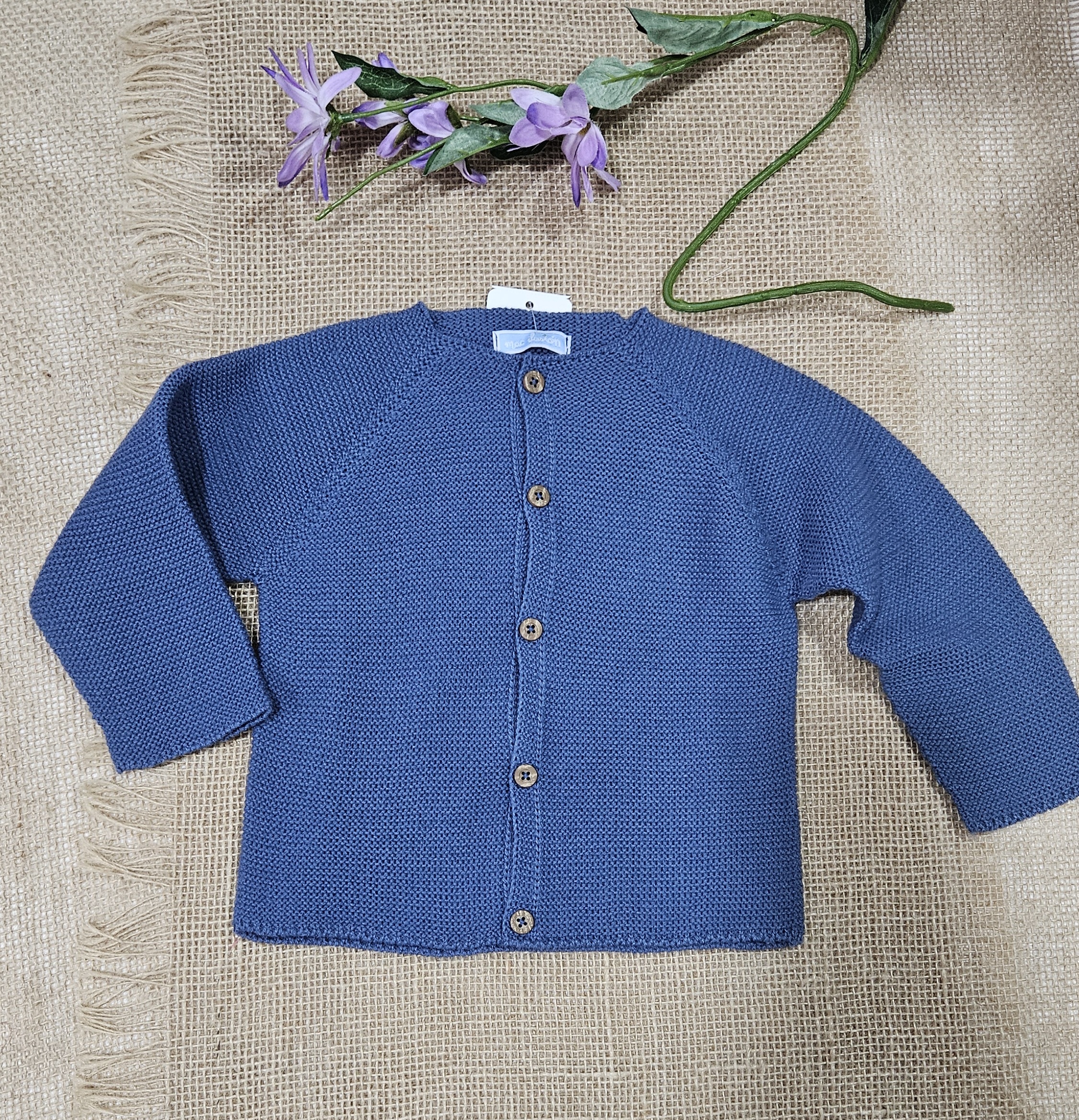 Rebeca chaqueta larga  de punto bobo unisex color Noche (Azulón) .  Ideal para combinar con vestidos, peleles, pantalón ..