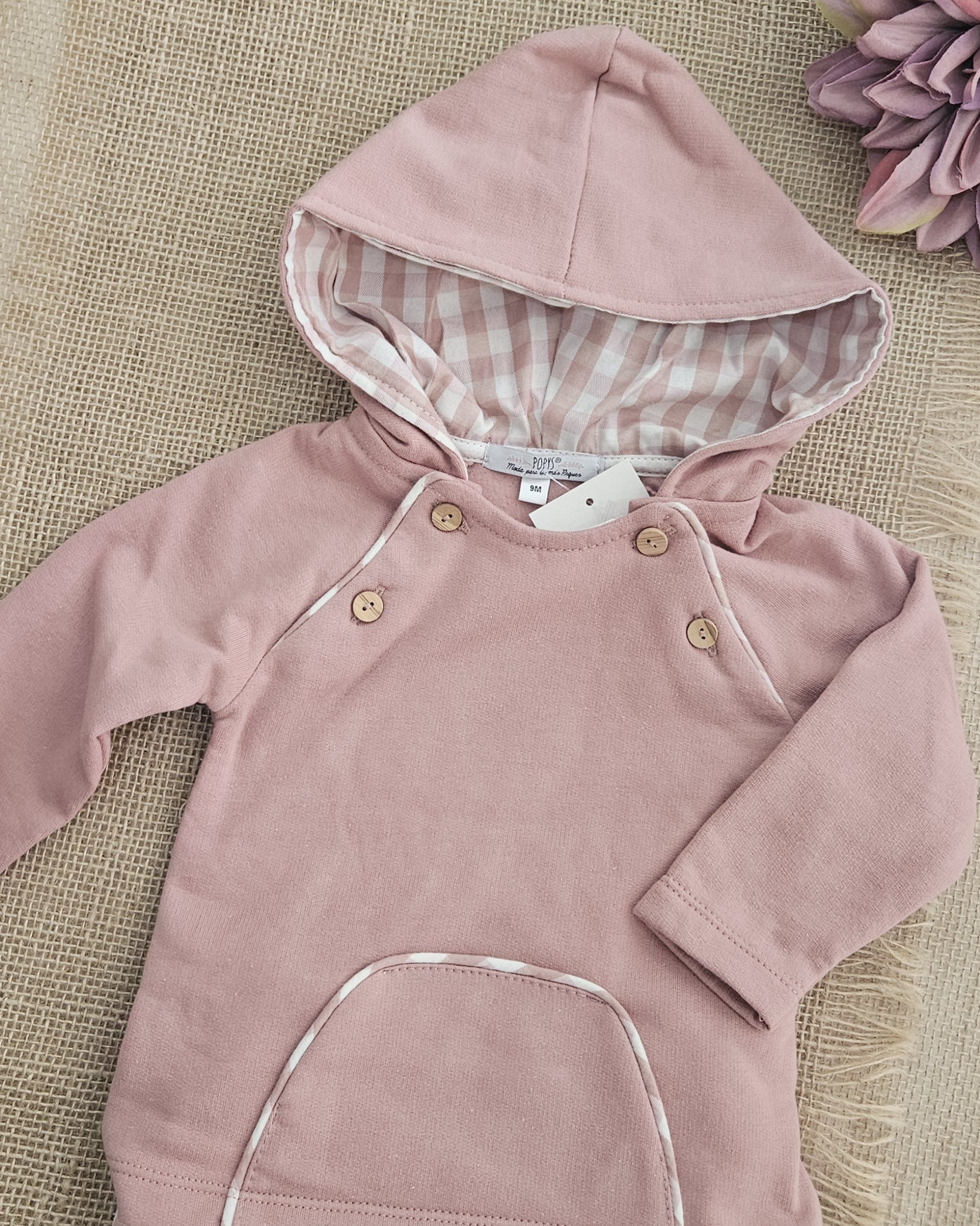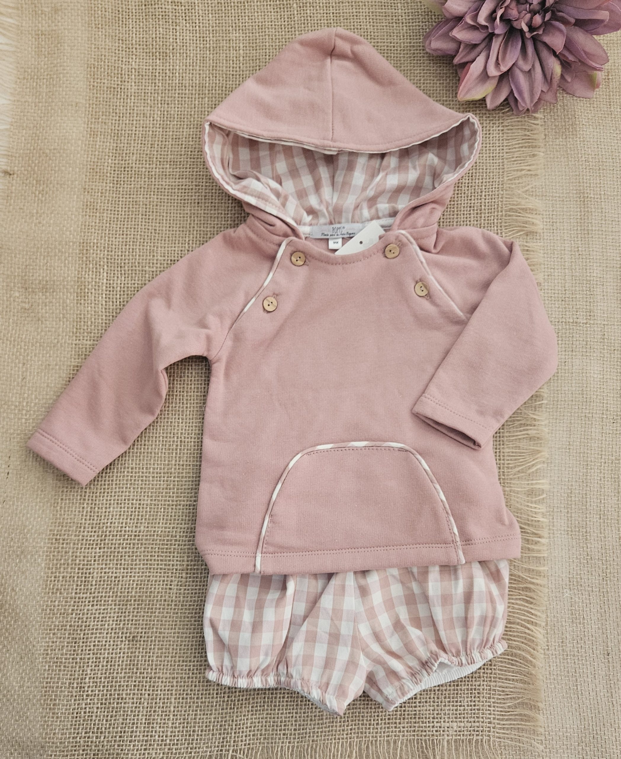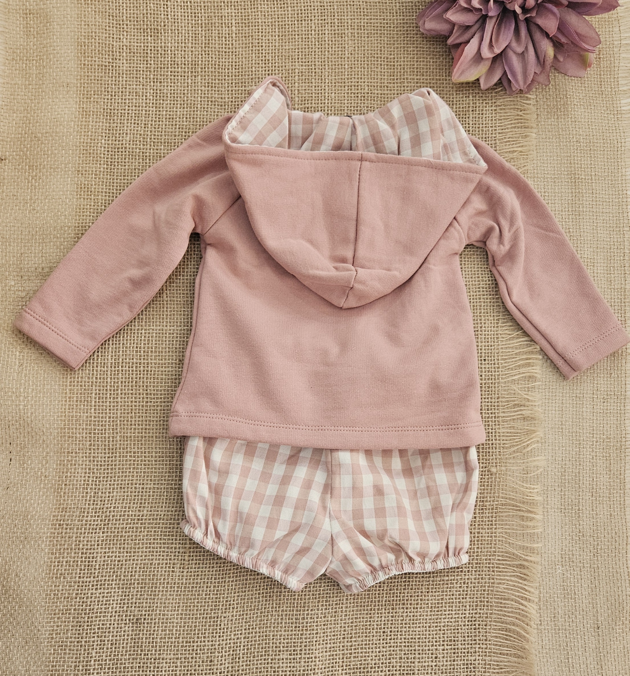 Conjunto unisex algodón color rosa maquillaje, bombacho tela vichy y sudadera bolsillo cangura y capucha forrada en tela 50% algodón, 50% poliester, interior felpa para mayor confort.