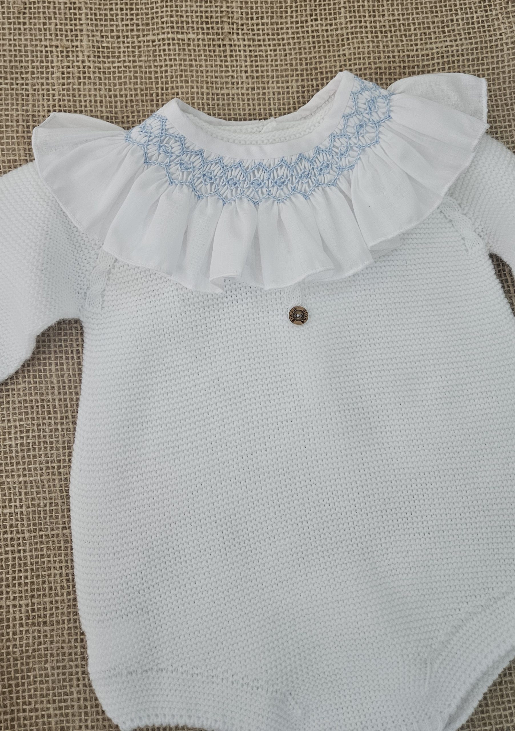 Cuello suelto  bebé  – color Blanco celeste .  ideal para combinar con peleles y vestidos en punto y tela.-.  Marca Artinsa.