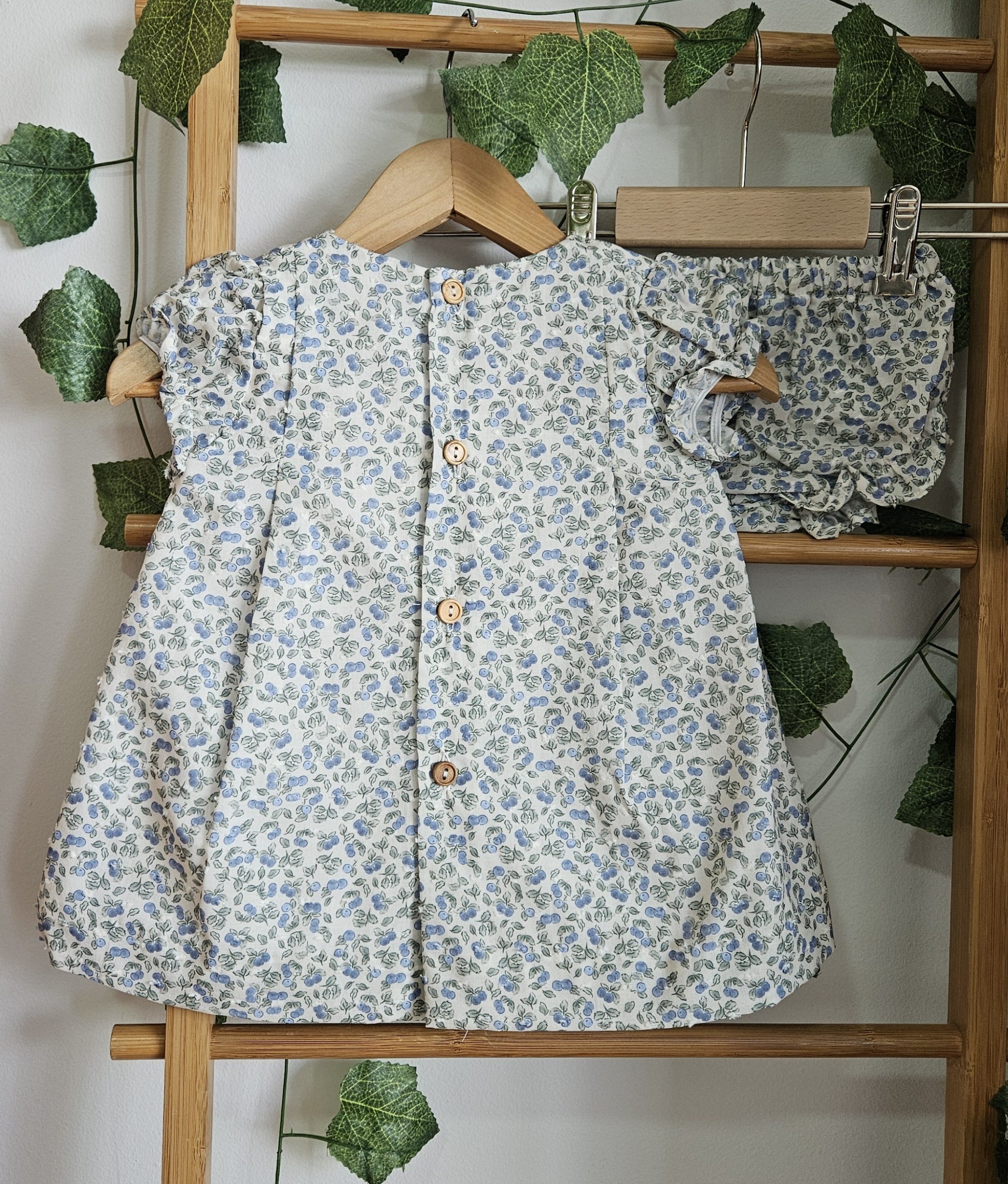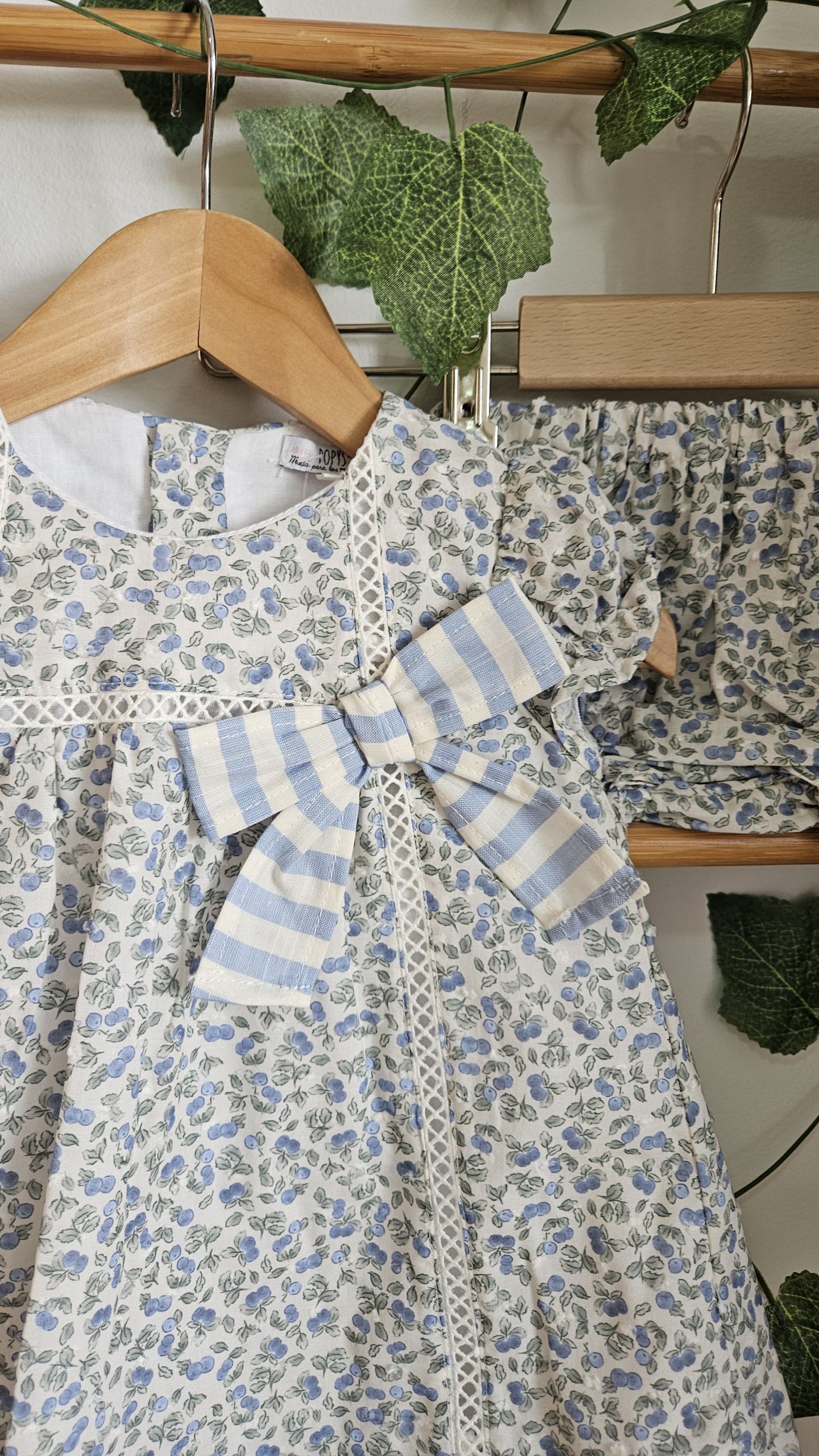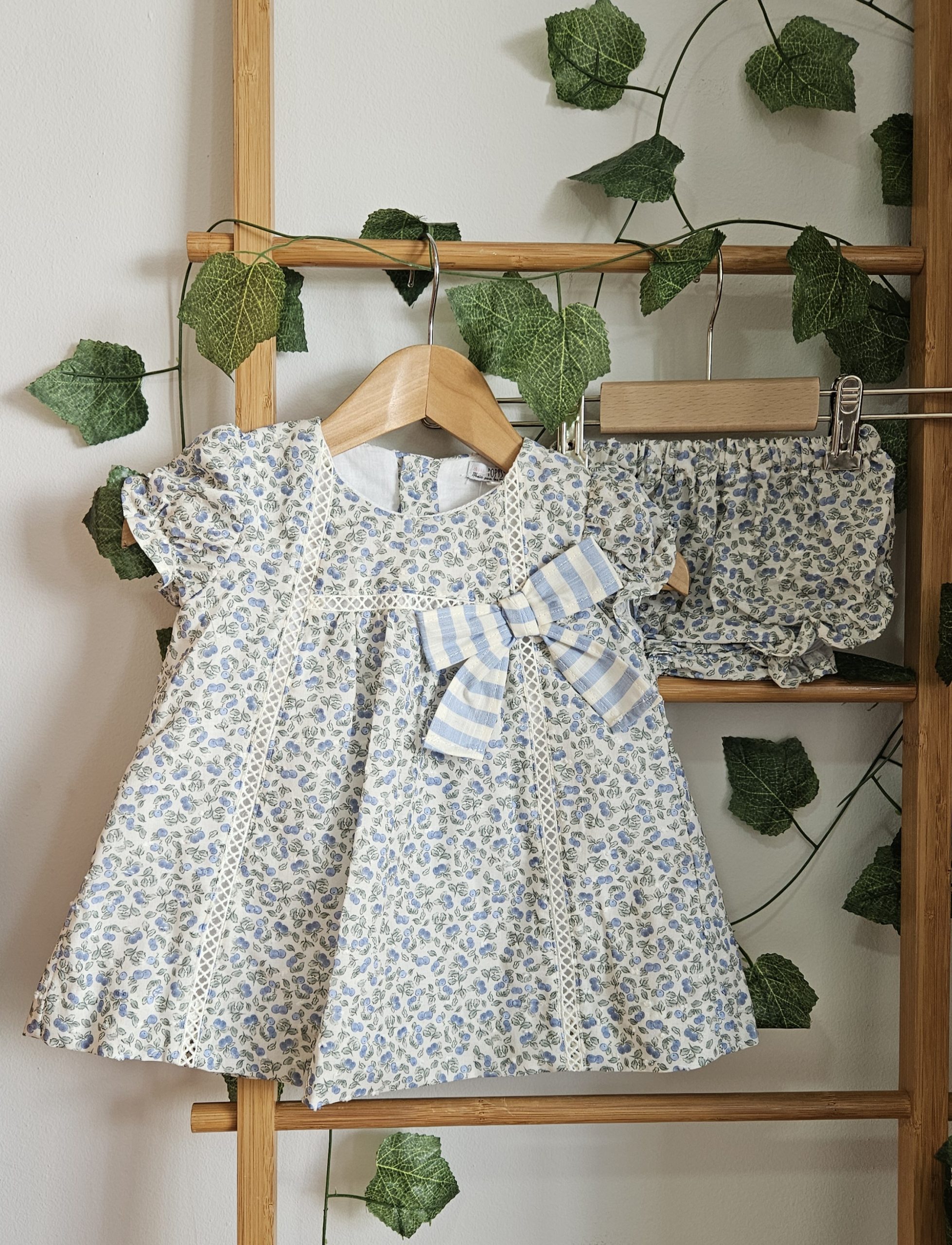 Jesusito para bebé  niña tejido estampado flores liberty adorno lazo rayas incluye braguitas a juego..Popys