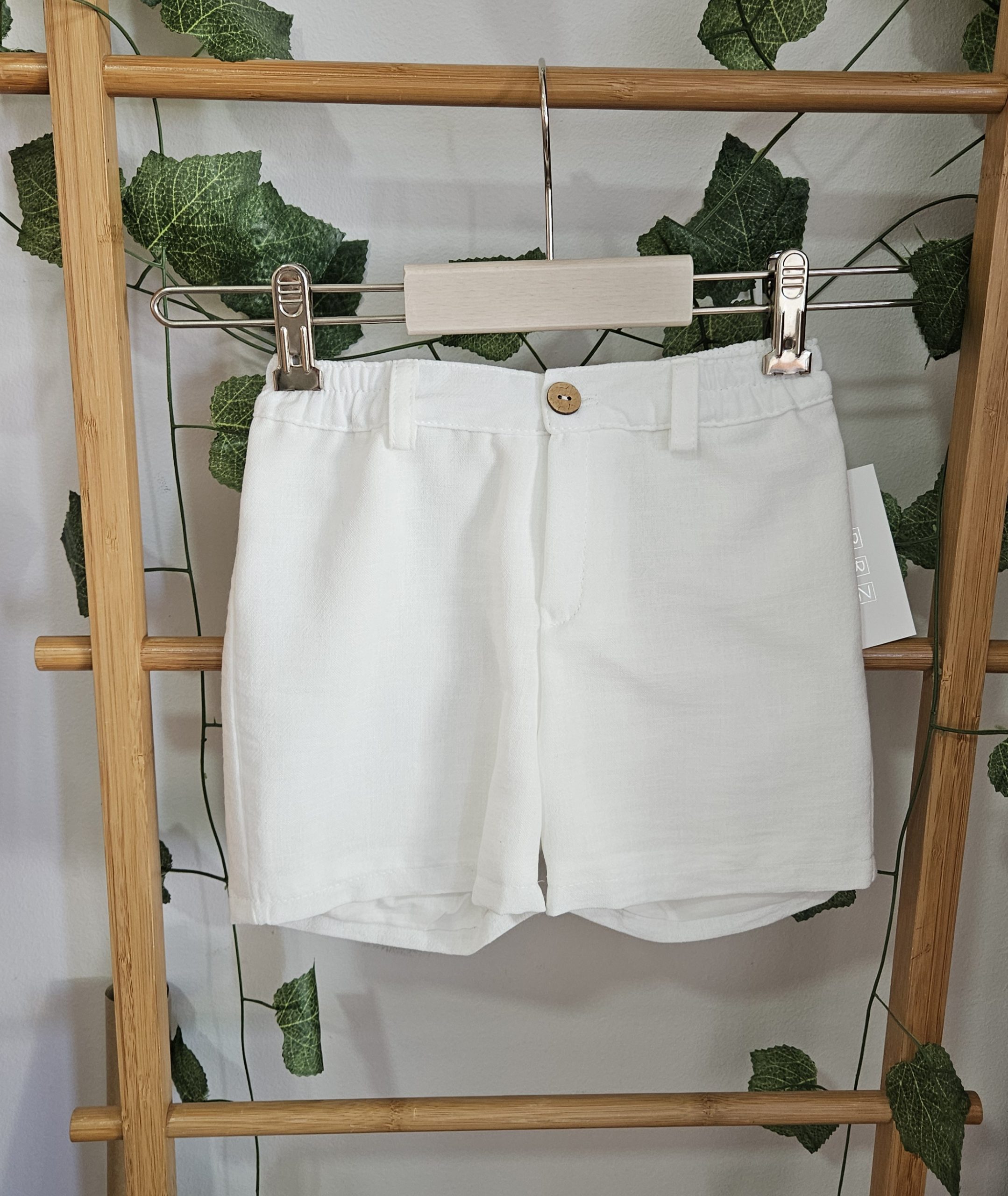 Pantalón corto para niño  forrado,  color blanco roto, 100% poliester, ideal para bodas y eventos.