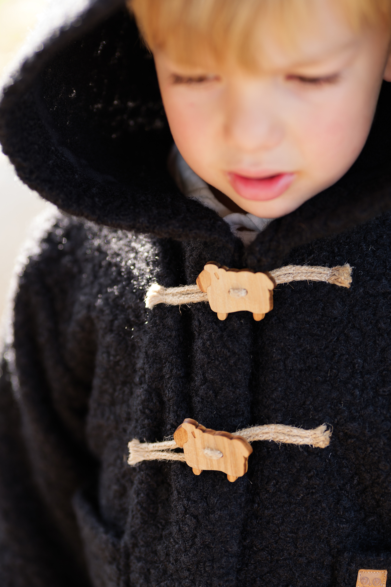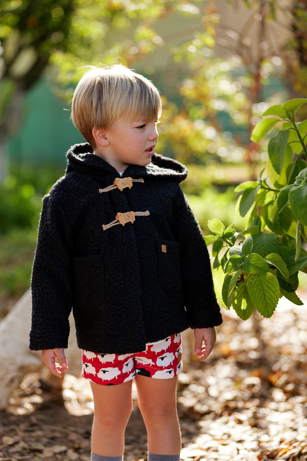 Chaqueta para niños unisex con capucha y botones en forma de ovejitas color negro ideal para combinar con la colección de ovejas … José Varón Moda infantil.