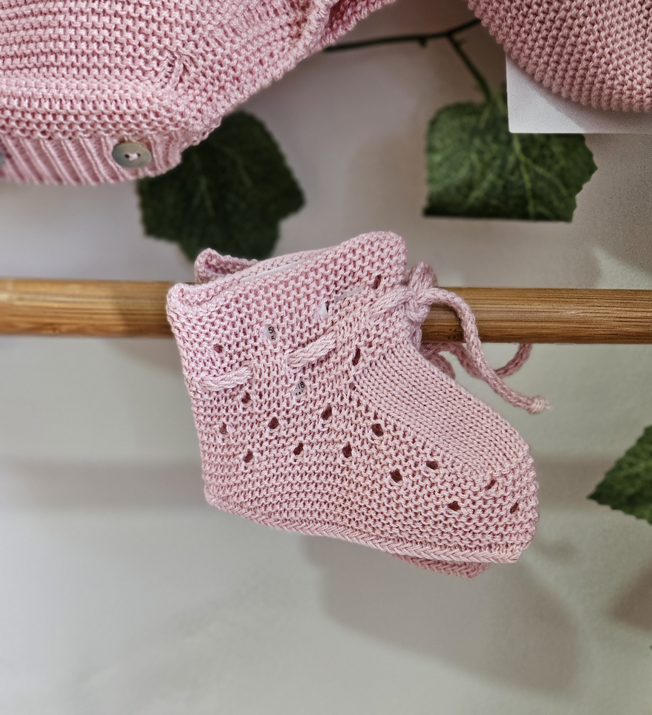 Patucos para bebés punto verano color Rosón punto calado cierre cordón, temporada Primavera- Verano Sigar