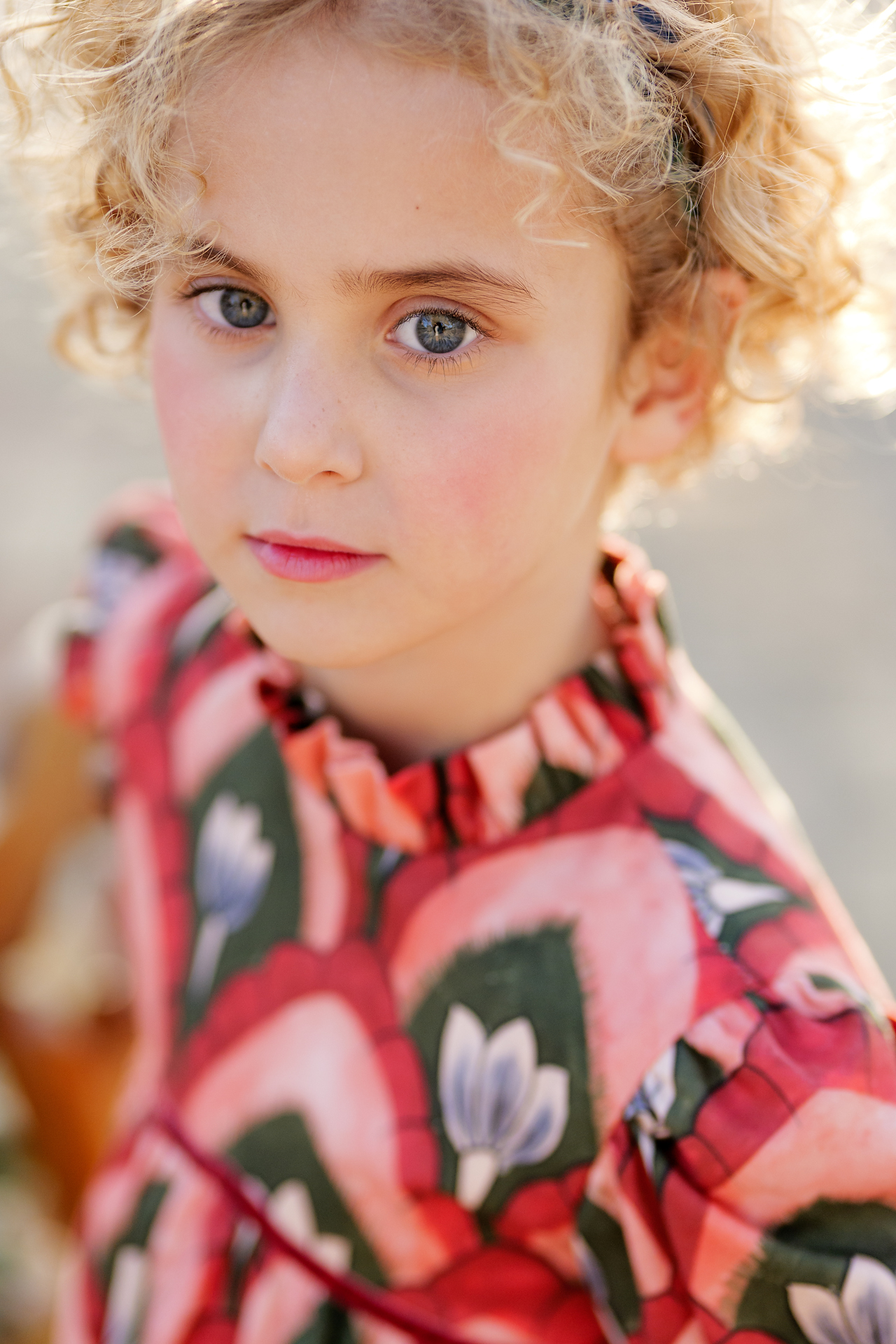 Vestido para niña estampado flor tonos granates, verde y maquillaje… José Varón Moda infantil.   ref 56019 Colección coordinada para hermanos.