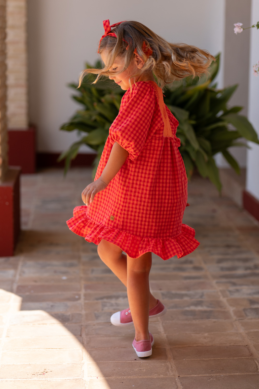 A Vestido niña vichy coral rojo JV R181055