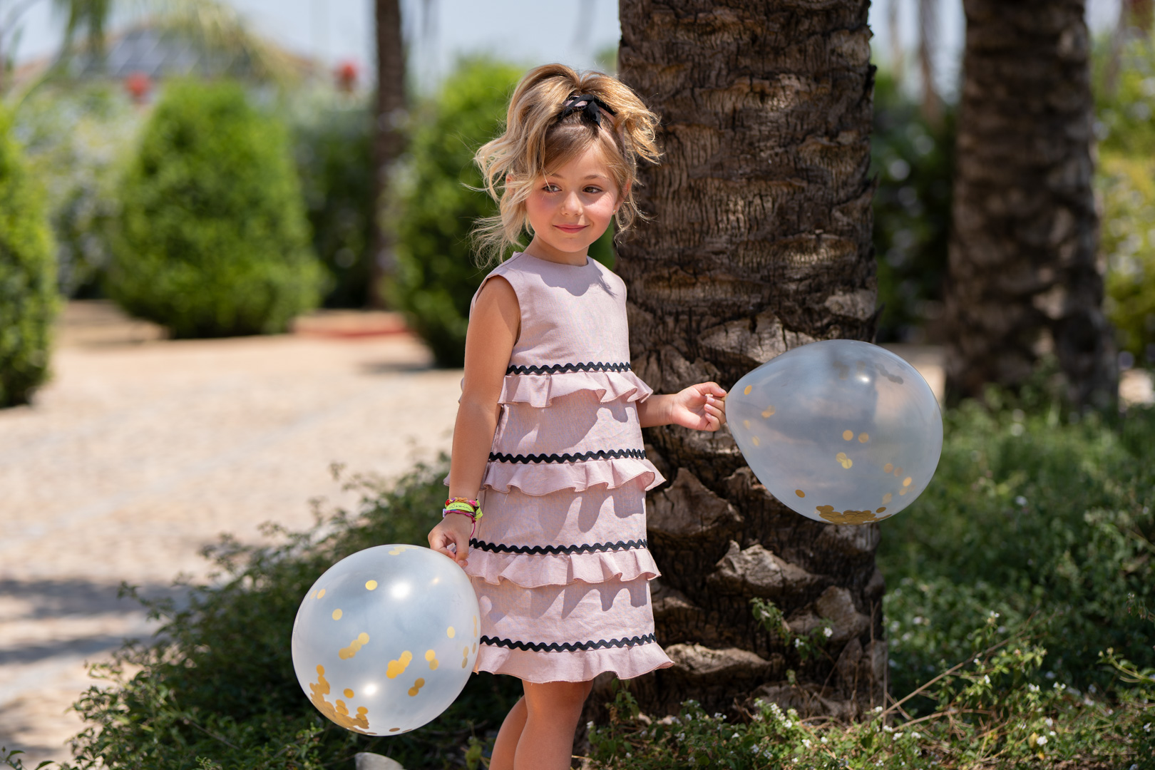 Vestido para niña volante color Malvarosa adorno piquillos negro José Varón Moda infantil.   ref 58083  Colección coordinada para hermanos. Primavera Verano 2026