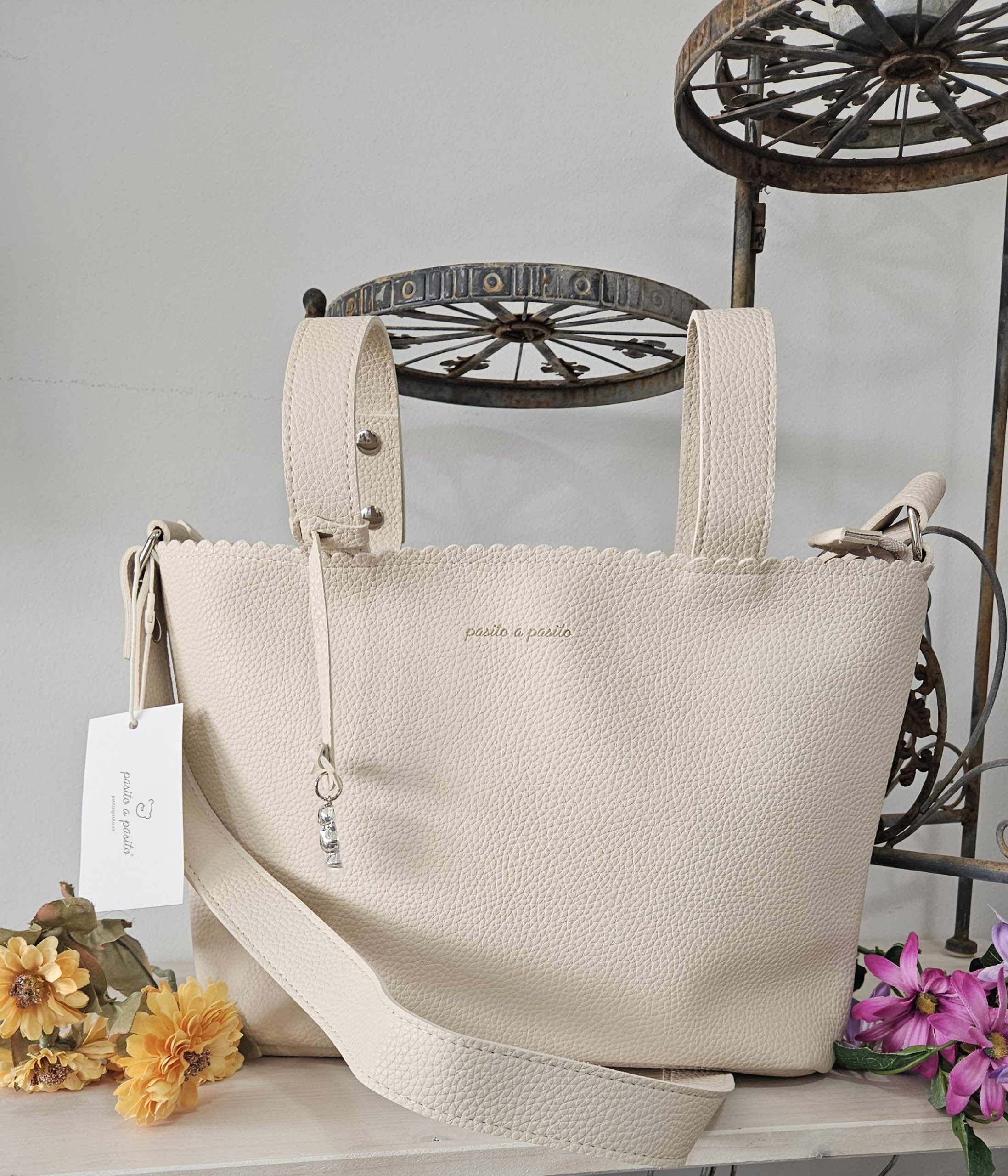 El bolso organizador o crossbody Icon Cream de Pasito a pasito elaborado en resistente y delicada polipiel para silla de paseo es un modelo muy ligero además de ser resistente y espacioso para que puedas llevar todo lo que podrías necesitar durante el paseo de tu bebé. Aparte de la gran capacidad que tiene, está distribuido para facilitarte la organización, con varios bolsillos que te ayudarán a colocar todos tus complementos ordenados y así puedes ubicarlos más fácil cuando vayas a usarlos. Incorpora un bolsillo interior térmico para botellas o biberones. Su diseño lo hacen perfecto para usar a diario y combinar con tus looks. Está fabricado con materiales de gran calidad, libres de colorantes azoicos, ftalatos y sustancias nocivas para la salud. Los productos para bebé de Pasito a Pasito cuentan con un diseño muy diferente a todas las demás. Sus colecciones se caracterizan por el trabajo al detallada, pensadas siempre desde un punto de vista práctico. Utilizan materiales de primera calidad para remarcar la elegancia y la armonía en cada una de sus piezas. Nuestros modelos son exclusivos y de estilo inconfundible, pensados para madres actuales que gozan de buen gusto y que aprecian los detalles tanto como nosotros. Especificaciones: Materiales: Eco-leather. Color: Cream. Medidas: 30X34X10 cm.