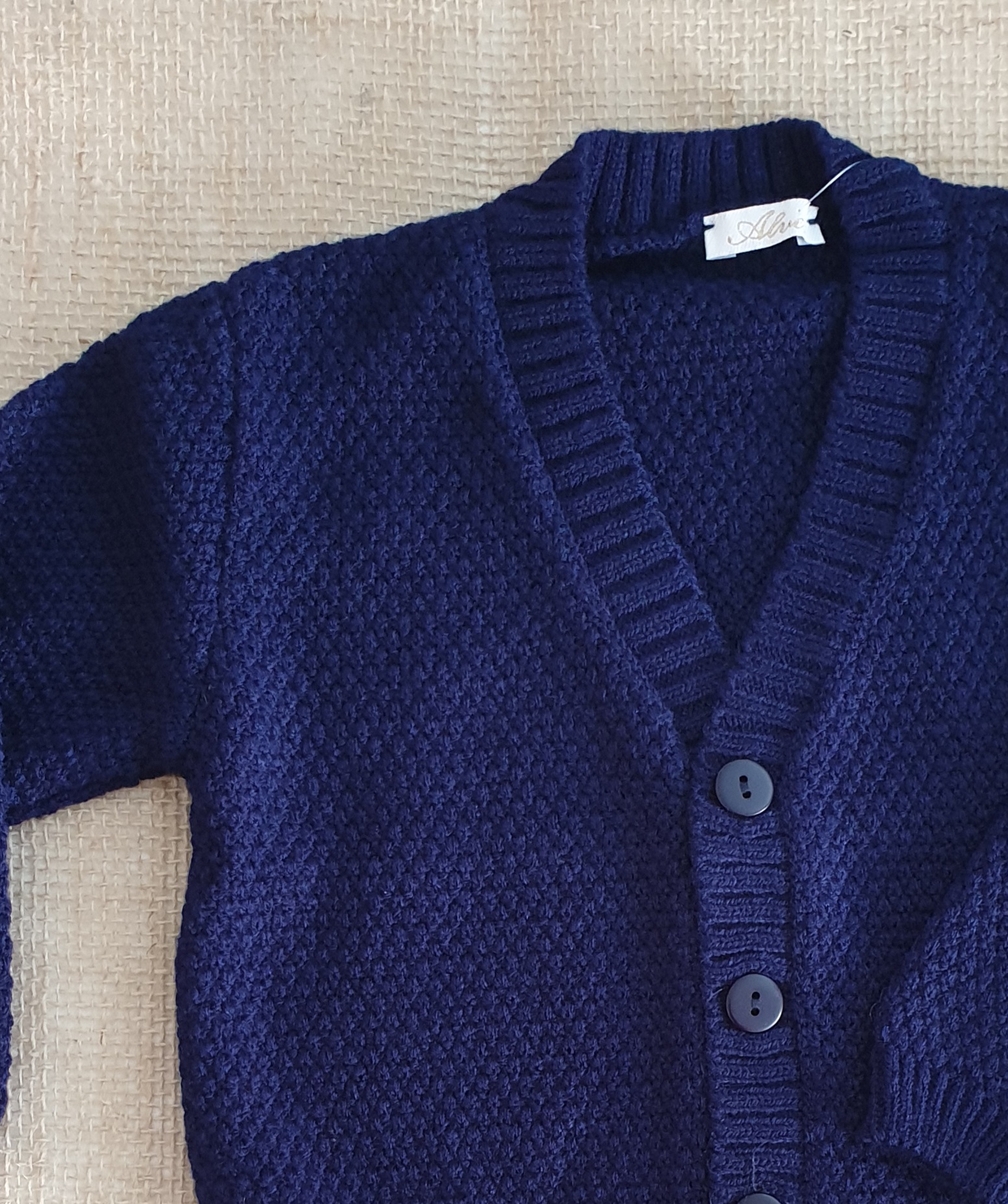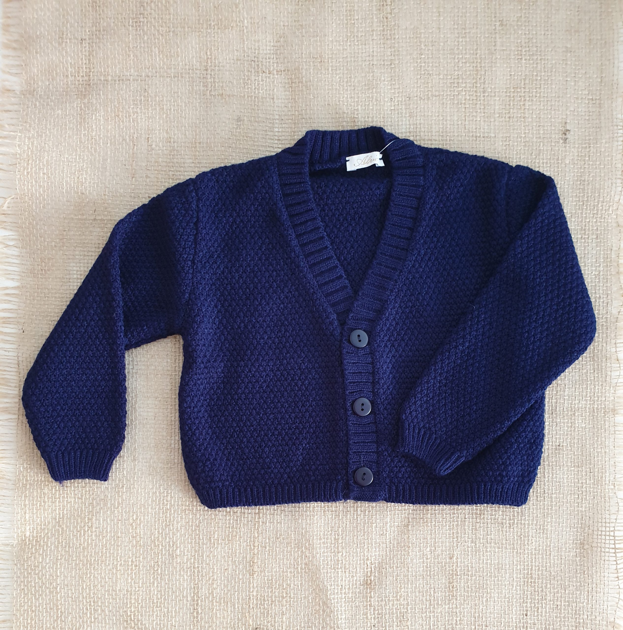 Chaqueta punto para niño color Azul marino  .  100% acrílico Ideal para combinar con peleles, pantalón ….