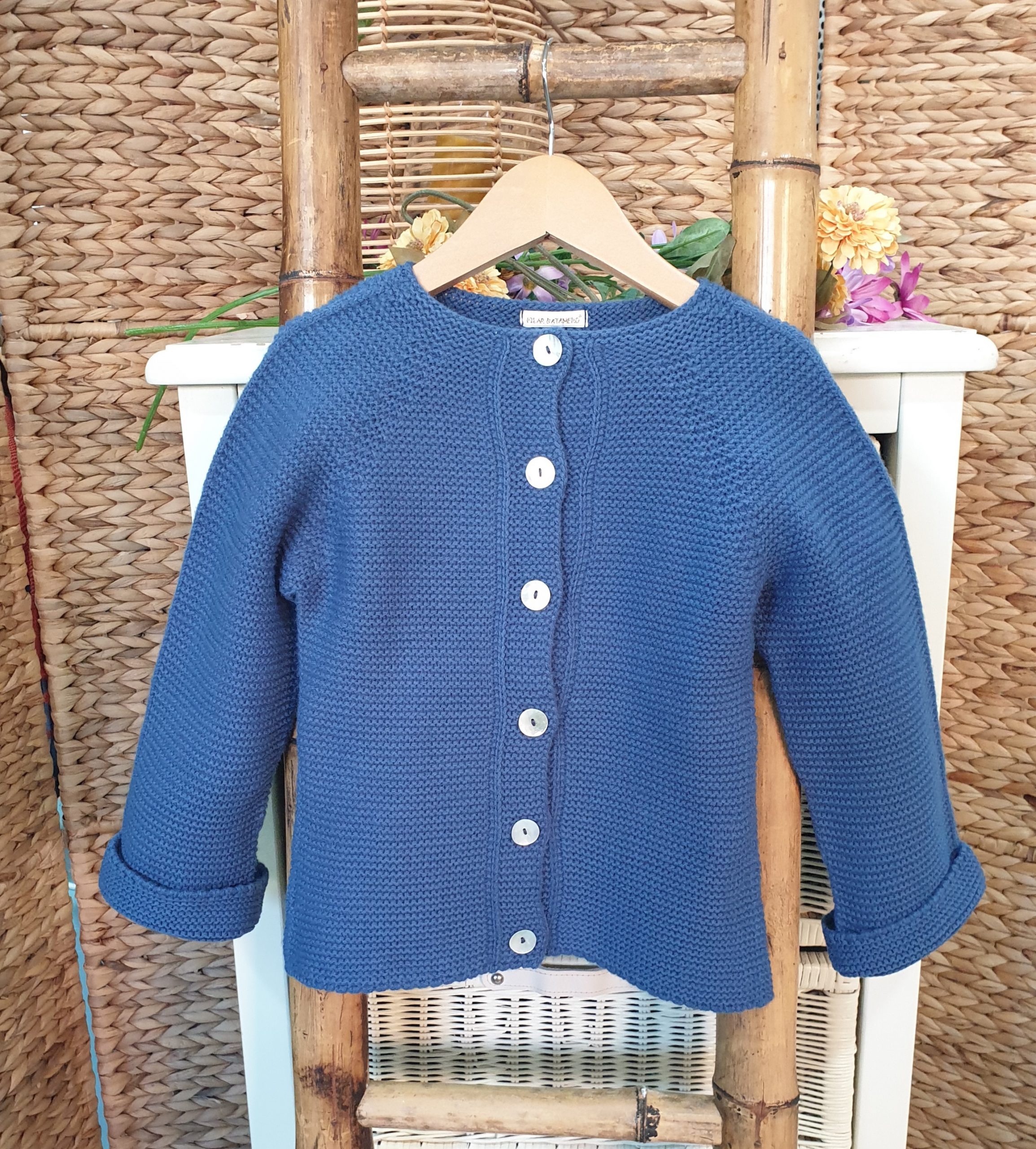 Talla 7 años.- sisa 31 cm. largo 43 cm. largo mangas desde cuello 45 cm.