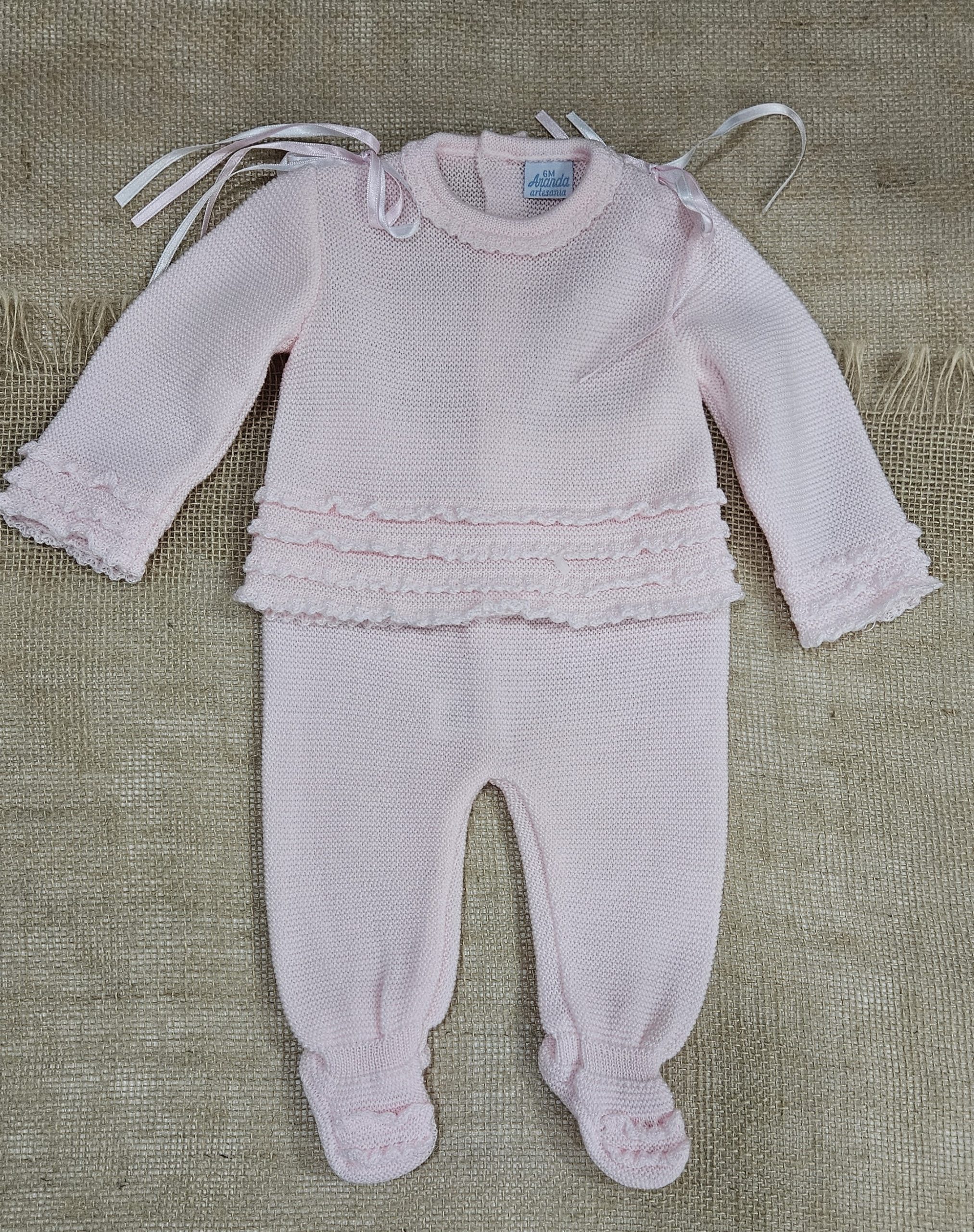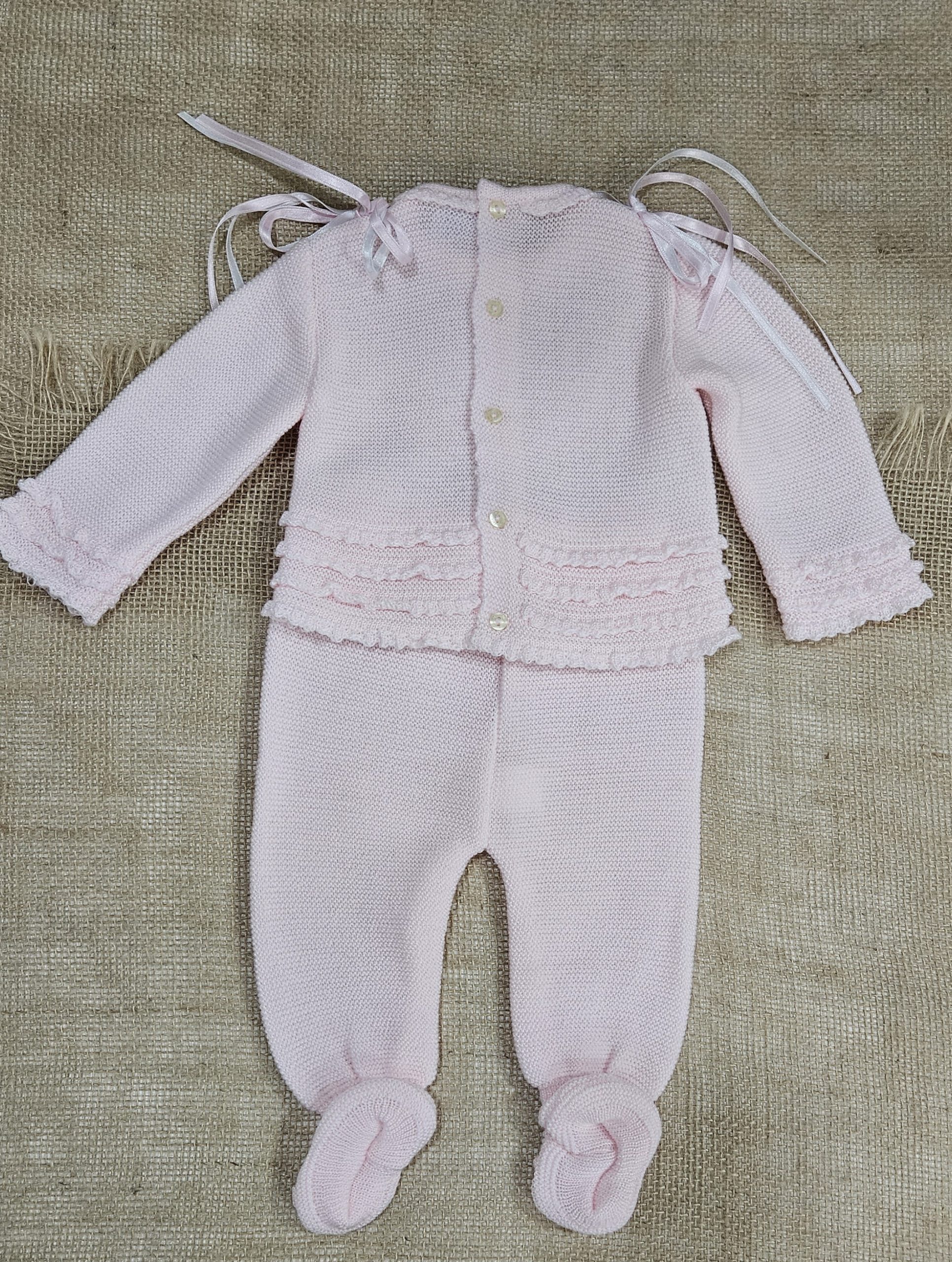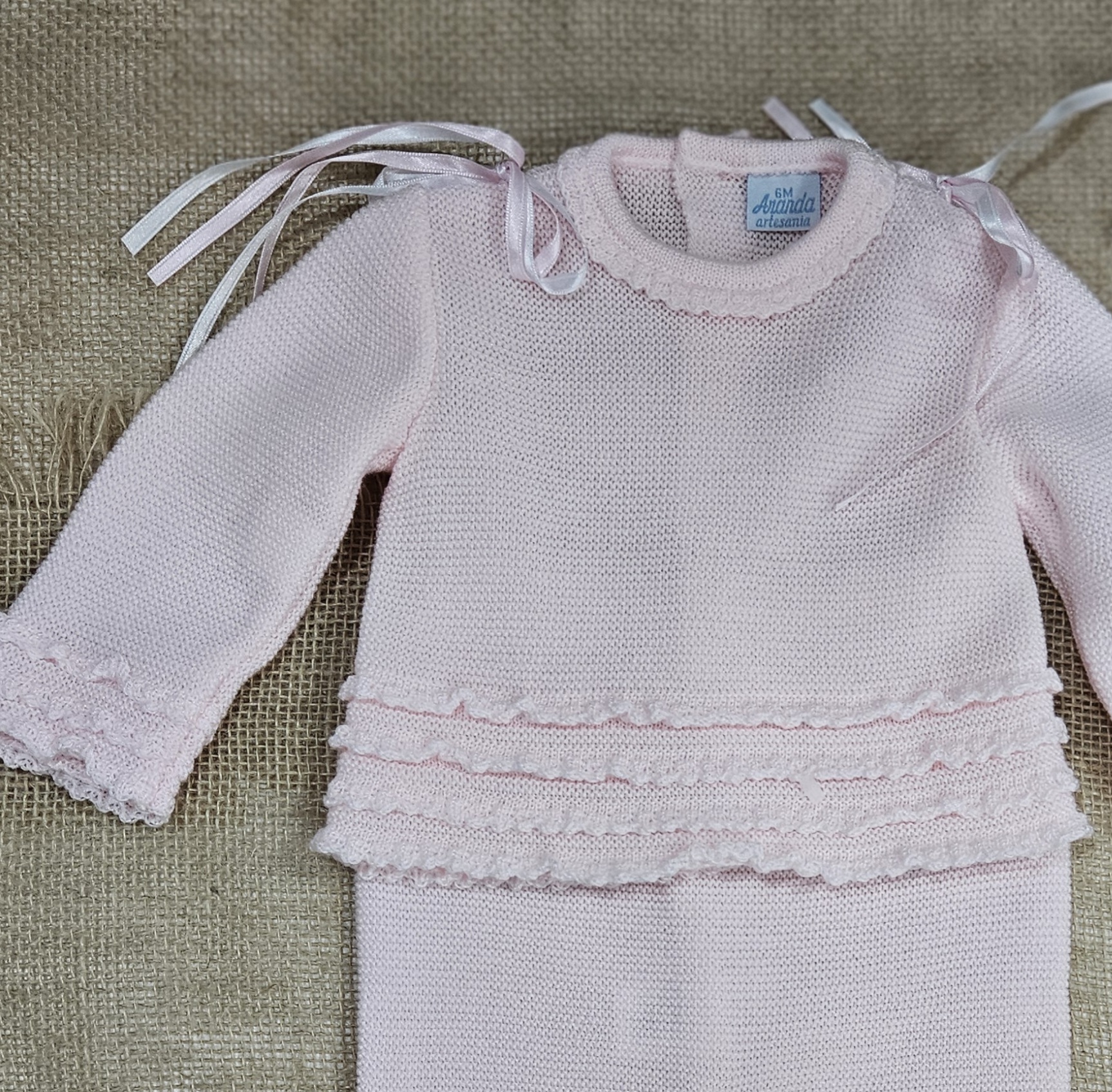 Conjunto de punto de primavera / verano compuesto por  jersey manga larga  + polaina a juego color rosa bebé.  100% acrílico