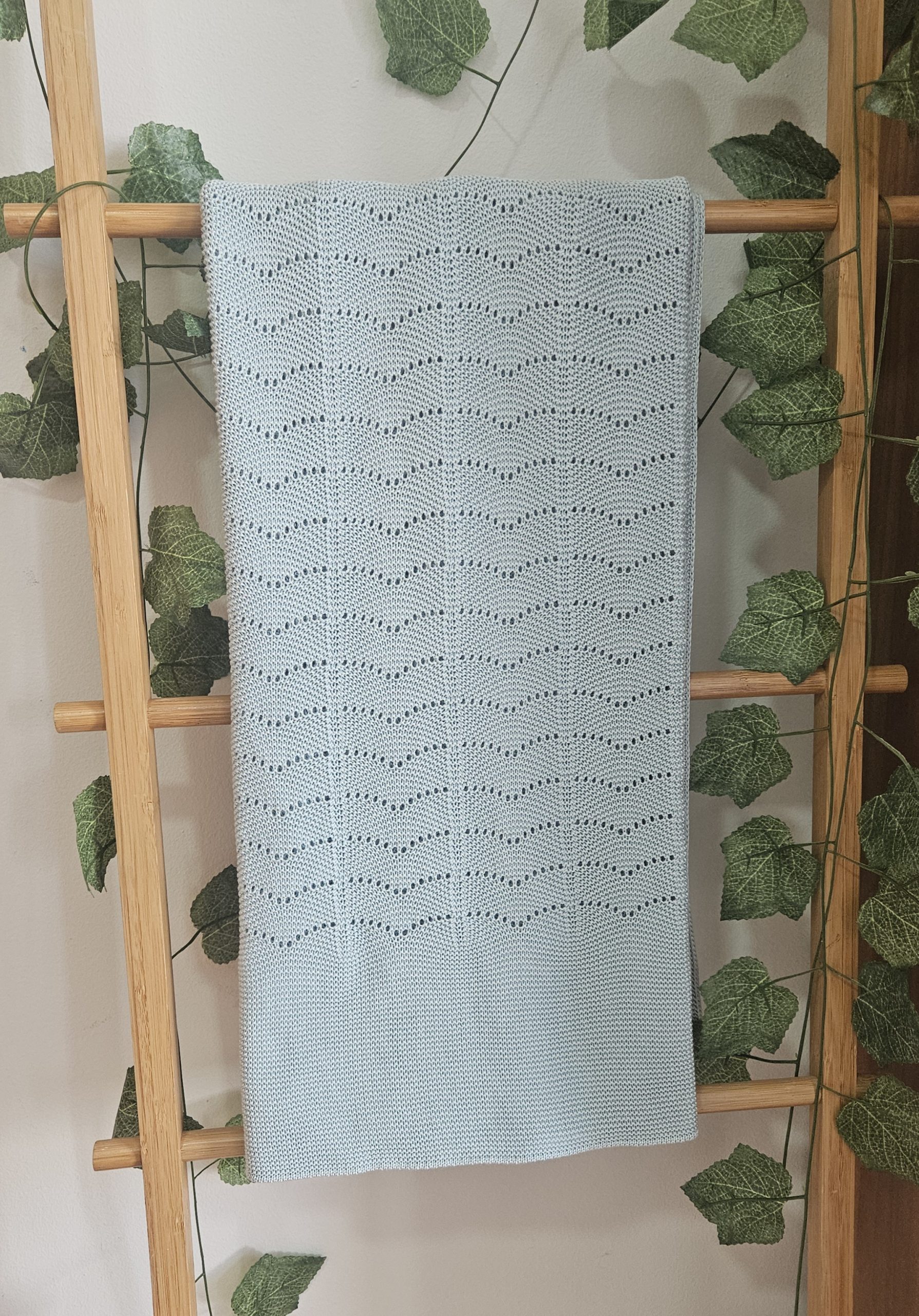 Toquilla chal de punto para bebés Mac Ilusión  . Color Aquatic (verde agua) calado haciendo lineas.